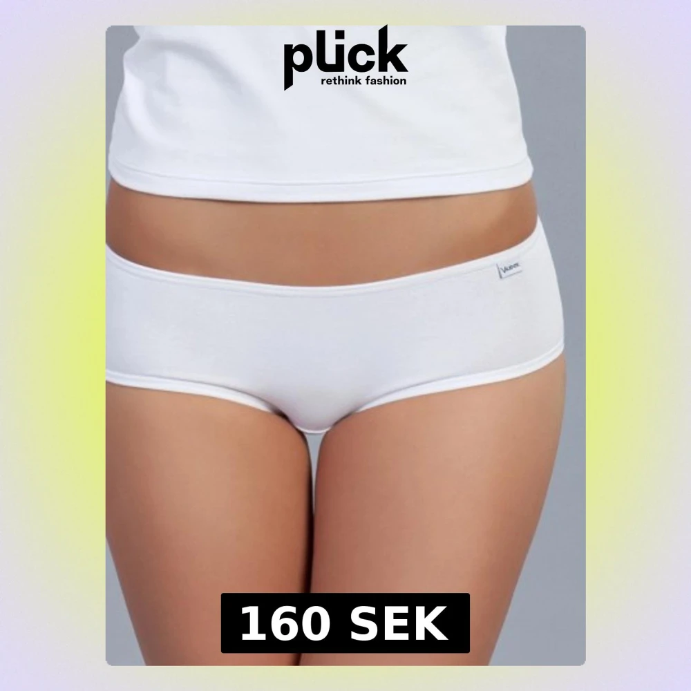 8 st. vita Valente bomull trosor med resår i midjan och benöppningarna. Trosorna har en liten etikett med Valente varumärket på framsidan.