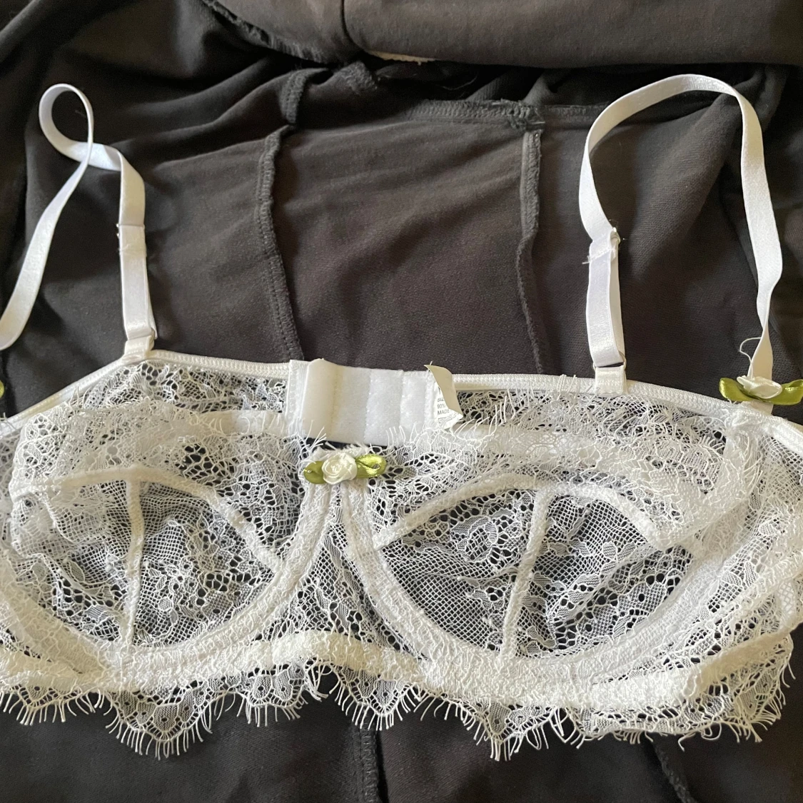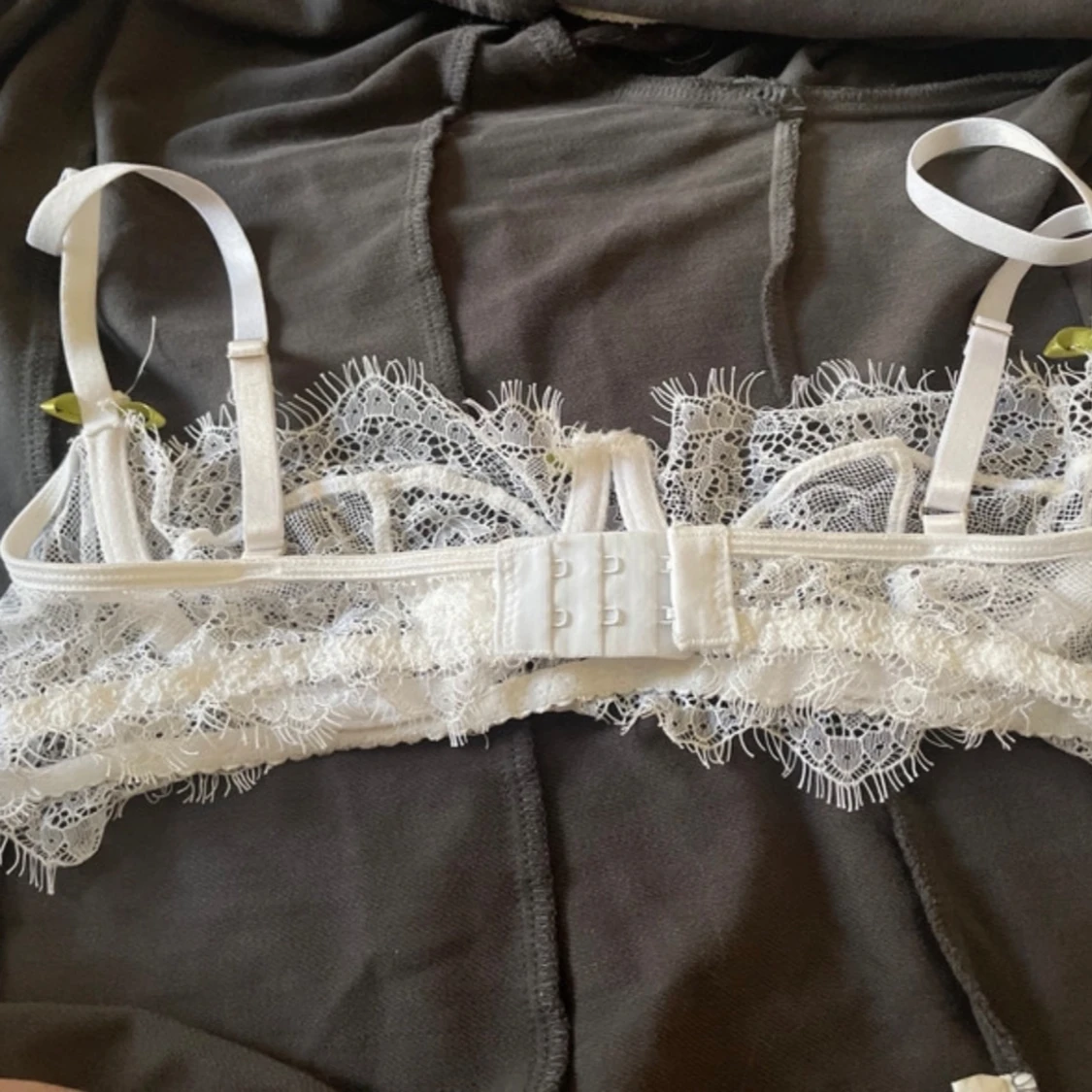 Helt ny Superfin vit korsett-topp från Nina Bonheur i spets med tunna axelband och små rosettdetaljer. Toppen har transparent spets, dekorativa blommor och justerbara band. Perfekt för dig som vill ha en romantisk och feminin vibe. Handskar ingår ej! Stl L o liten i stl.
