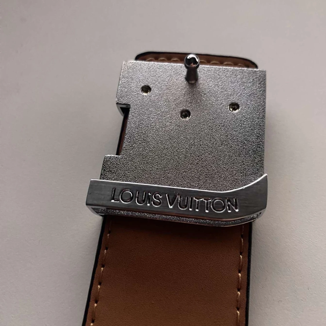 Snyggt vändbart bälte från L-v med klassiskt monogrammönster i svart på ena sidan och slät brun skinn på andra. Kraftigt silverfärgat spänne med L-v -logga. Perfekt accessoar för att lyfta din outfit.