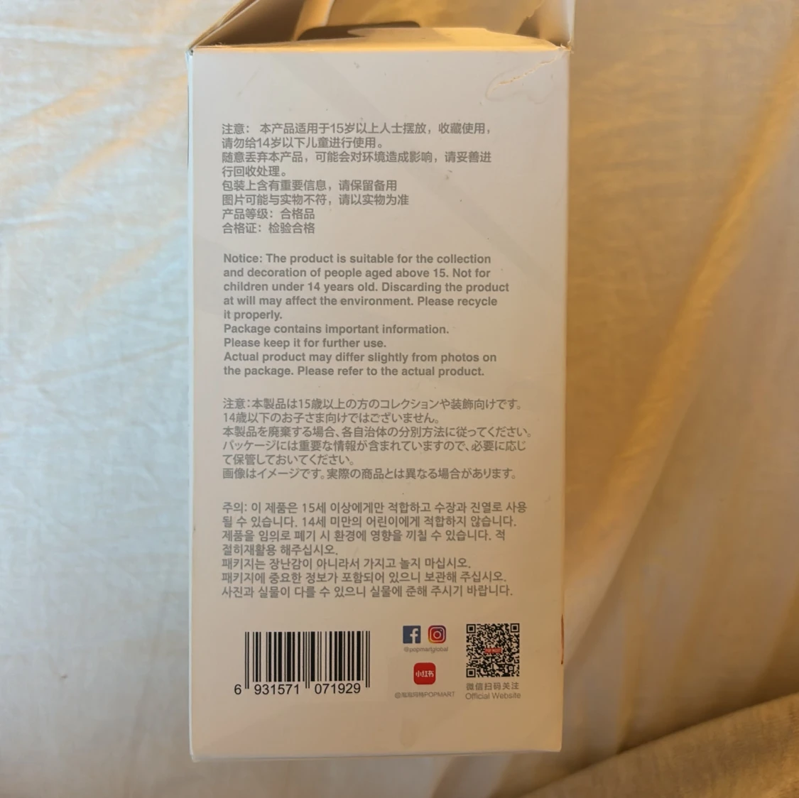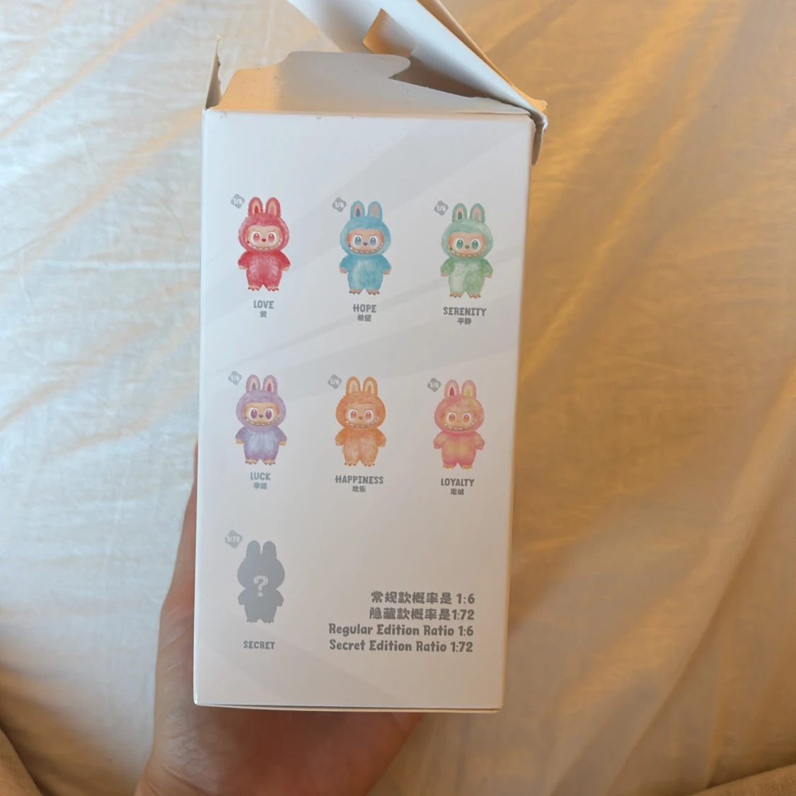 En öppnad äkta labubu, kan visa labubun vid begäran ifall du vill veta vilken färg den är annars kan jag hålla det hemligt, därav inga bilder på dockan! Den har varit väldigt orörd och bara stått på en hylla i cirka en månad så inga skador eller liknade.