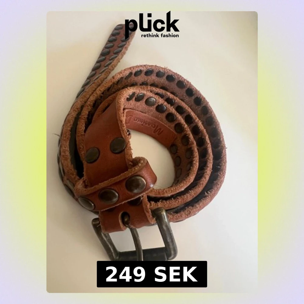 Brunt nitat bälte i skinn från Massimo Dutti med en otroligt mjuk kvalitet och känsla. Skärpet har råa kanter och en robust metallspänne i mörk matt finish. Perfekt till jeans eller som accessoar över tröja. Modellen på bilden har strl 36, passar S/M.