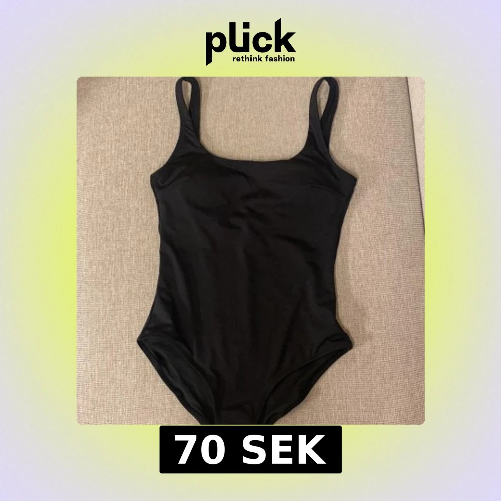 En svart baddräkt med breda axelband. Lite rundad urringning fram och något djupare rygg.