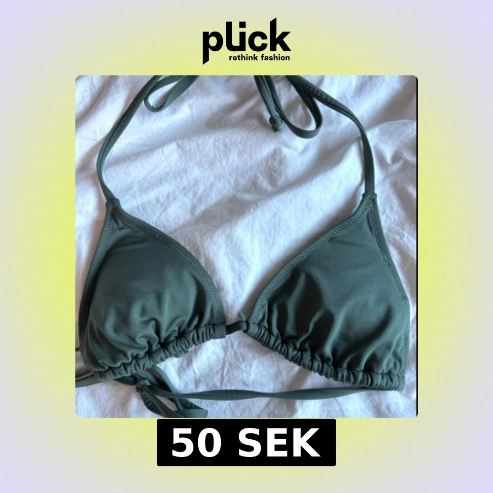 Snygg mörkgrön trekantsbikini med knyt i nacken och ryggen.