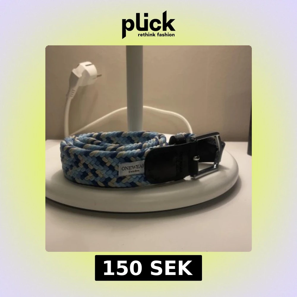Snyggt flätat bälte i blått, vitt och beige från Onewear Sweden. Bältet har ett silverfärgat spänne och detaljer i svart skinn. Perfekt accessoar för att lyfta din outfit. Bältet är använt ett fåtal gånger och är som helt nytt. 300 kronor är nypriset och jag säljer för 150. Skriv för fler funderingar eller frågor💯💯💯