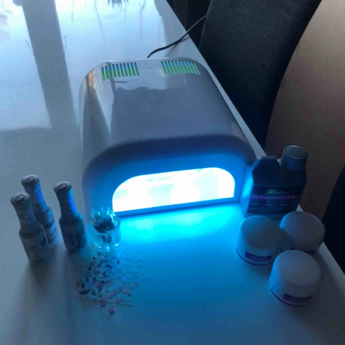 Uv lampa med lite tillbehör. (Tillbehören är inte nya eller oanvända). Kunden står för frakt.