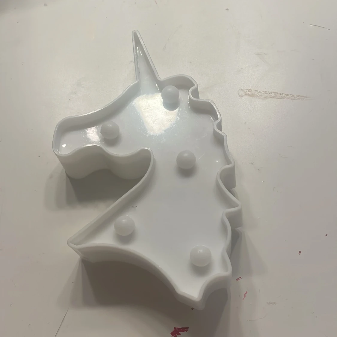 En lampa som är figurer som en Unicorn. Kanske till ett barn