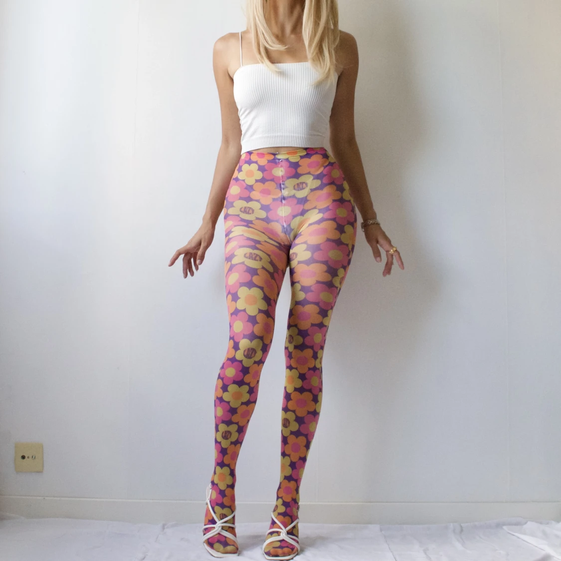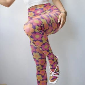 • CUTE 60s PINK, PURPLE, YELLOW AND ORANGE FLOWER POWER PRINTED TIGHTS / NYLONS • SIZE - XS-M / EU 34-38 • BRAND - Lazy Oaf