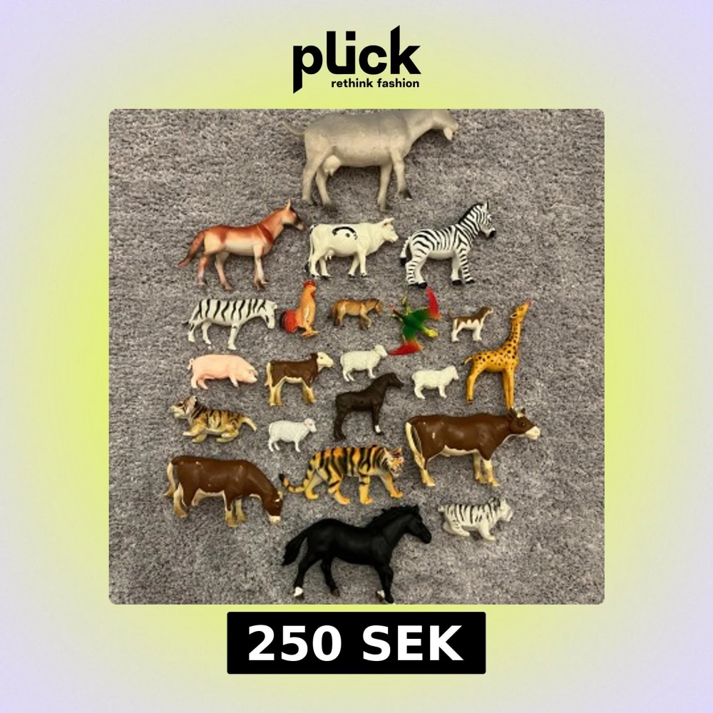 23 stora och små olika leksaksdjur i hård plast. Paketpris: 250 kr OBS! Sälj ej separat. Pris kan diskuteras vid en snabb och smidig affär! Finns att hämta vid Haninge.