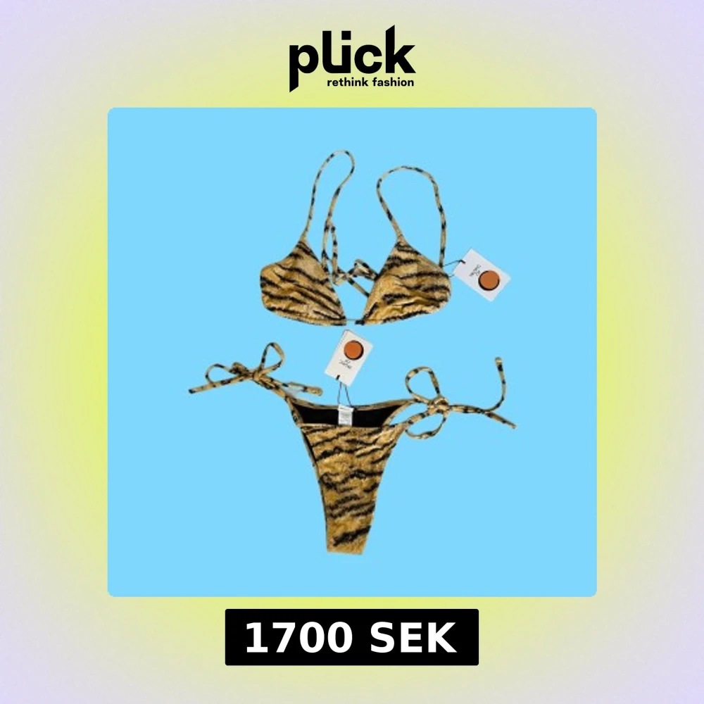 Aldrig använd bikini från Tropic of C, lappar och originalspåren finns kvar! Nypris för varje del är 1200, men säljer hela setet för 1700💕💕 Triangeltopp med smala axelband och knyt i ryggen, samt trosa med knyt i sidorna.
