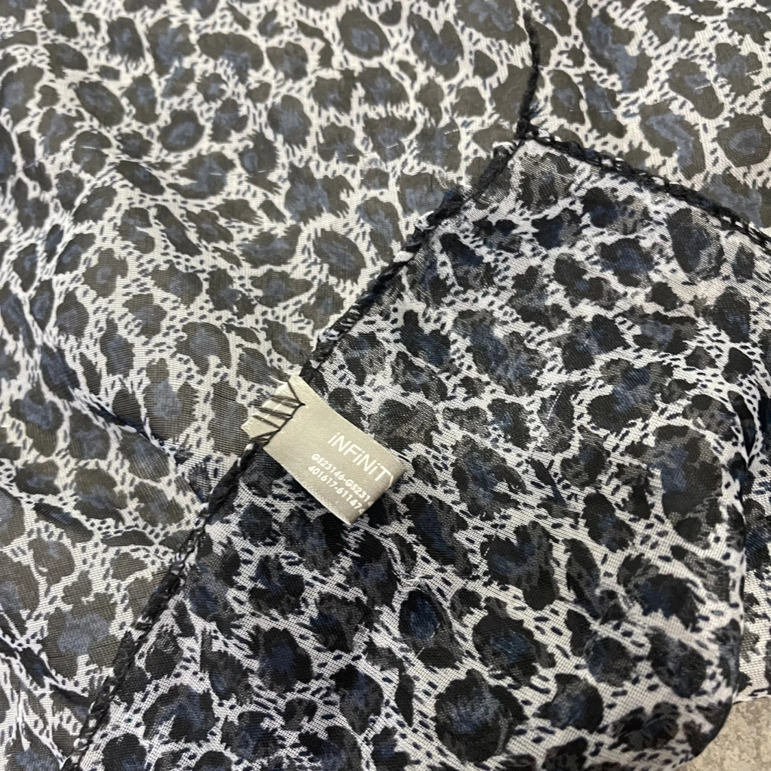 Stilren fyrkantig halsduk från Infiniti i svart, grått och vitt leopardmönster. Halsduken är ca 50x50 cm och tillverkad i tunn, lätt polyester som ger en luftig känsla. Perfekt accessoar för att lyfta din outfit med lite edge.