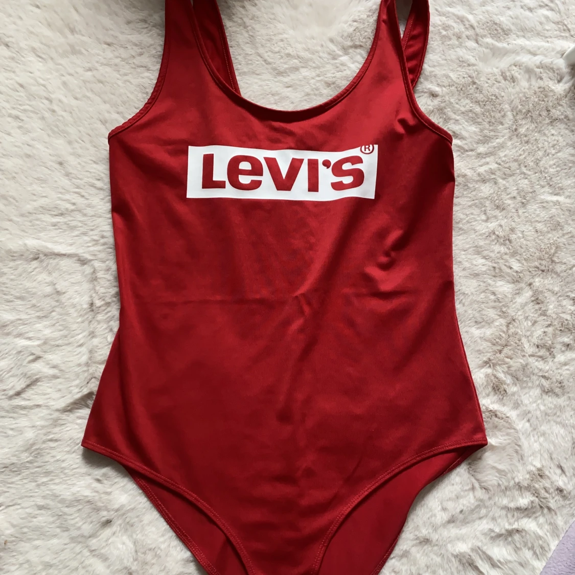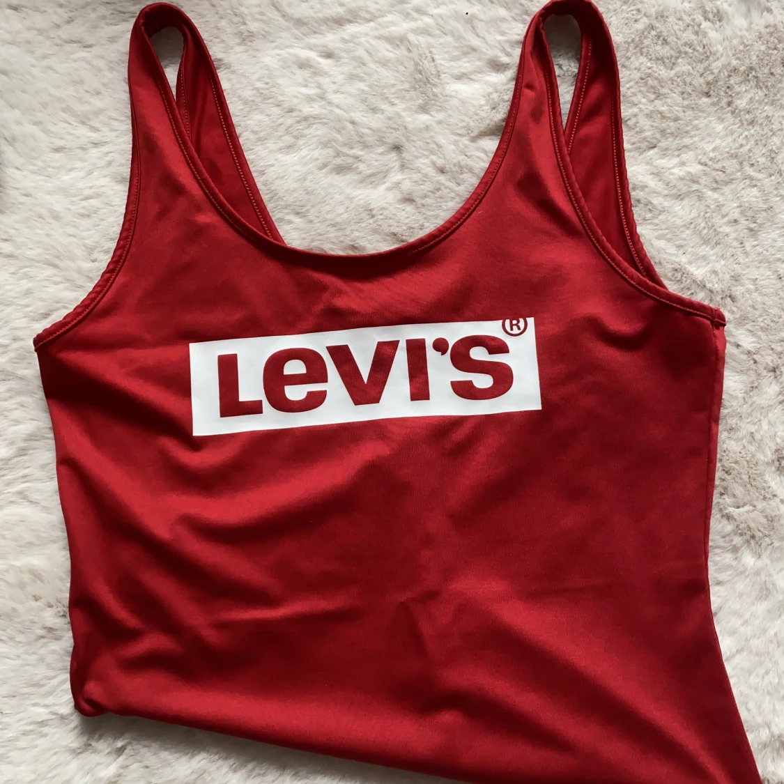 Världens finaste body från Levi’s, i storlek M. Har två tryckknappar nertill. Materialet är mjukt (nästan baddräktsmaterial) och stretchigt! 🫶🏼