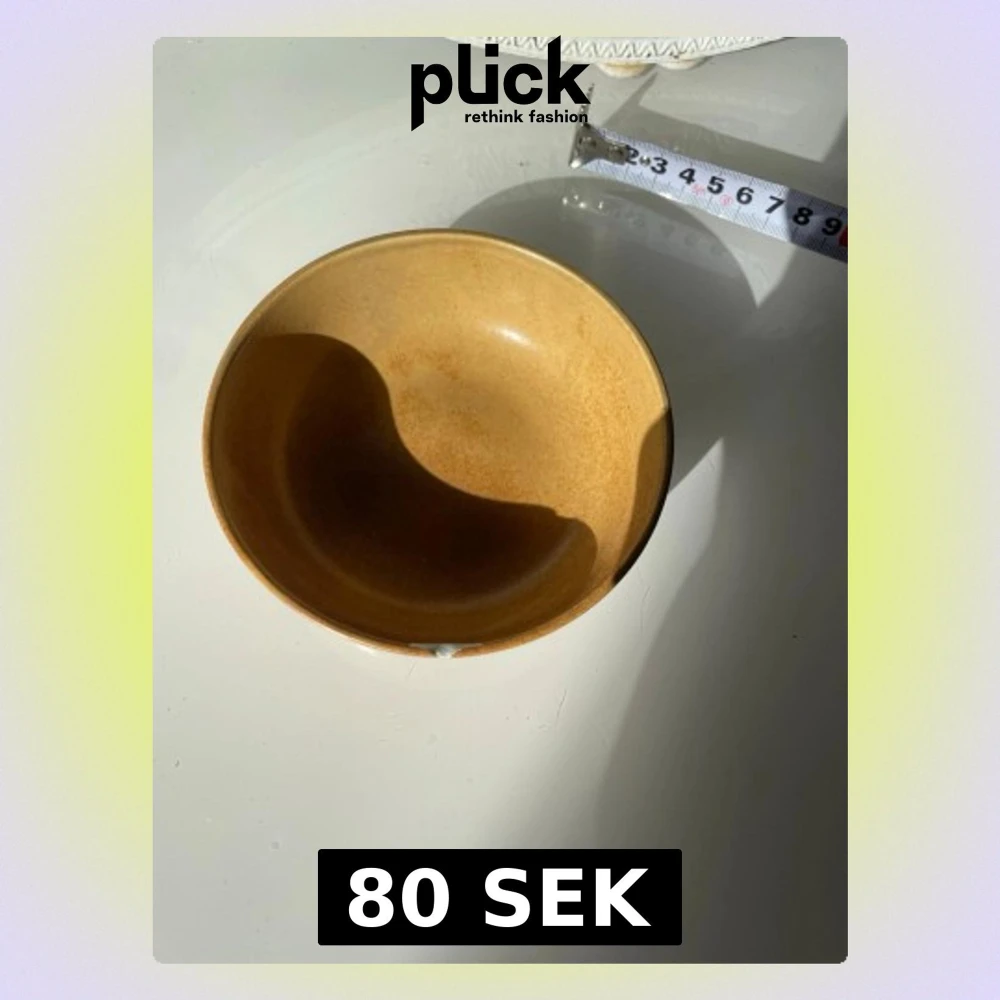 Säljer en rund skål i keramik med varm brun färg och glaserad yta. Skålen har en diameter på cirka 13 cm och passar perfekt till snacks, frukt eller småprylar. Enkel och stilren design som ger en retrovibe till hemmet.