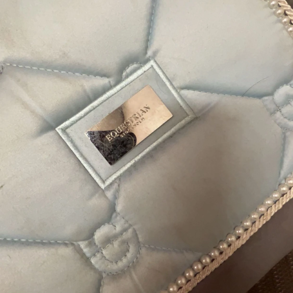 Säljer en ljusblå quiltad sadelpad från Equestrian Stockholm. Den har ett elegant mönster och en diskret logotyp i silver. Perfekt för ridning och ger en stilren look till din utrustning. De kostar 600kr när det är nytt.