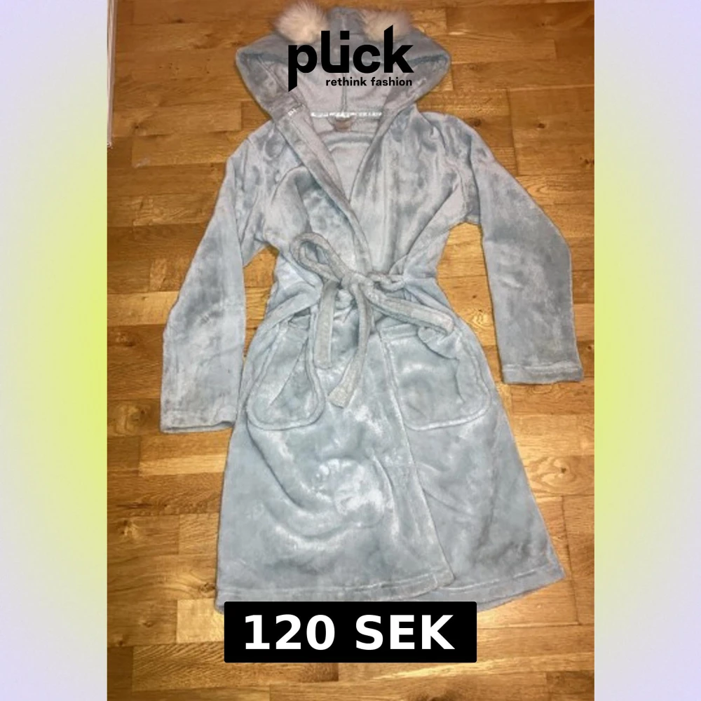 Supermysig ljusblå teddyjacka med huva och två fluffiga vita bollar på toppen. Jackan har långa ärmar, stora fickor och knyts med bälte i midjan. Materialet är mjukt fleece som känns skönt mot huden, perfekt för chilliga dagar hemma eller efter duschen. Storlek är 148/152 men passar alla storlekar. Går ner till knäna på en som är 165 lång. PRISET GÅR ATT DISKUTERA (GÅR GÄRNA NER PÅ PRISET VID KÖP)💋