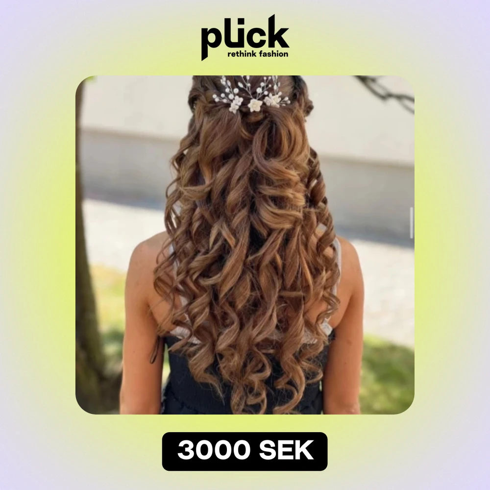 Säljer nu mitt löshår då jag endast använde det till balen och är numera blond. Håret är 60cm, äkta och från rapunzel. Det är klipps så är väldigt enkelt att sätta i! Min frisör beställde detta åt mig för 4000kr.