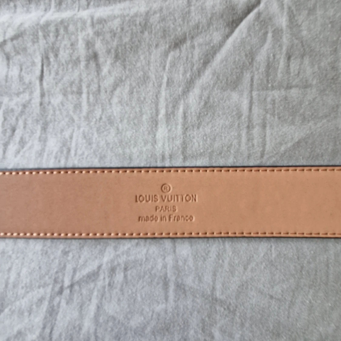 Snyggt Louis Vuitton bälte i Damier Graphite-mönster med svart LV-spänne. Bältet är svart och grått med rutigt mönster på utsidan och ljusbrun insida i skinn. Perfekt accessoar för att lyfta din outfit med en lyxig touch.