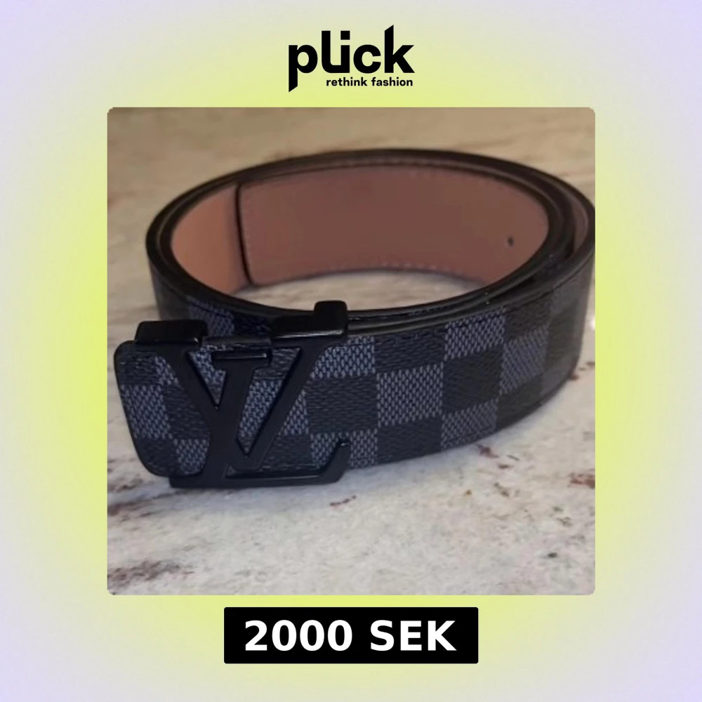 Snyggt bälte från Louis Vuitton med klassiskt rutigt mönster i svart och grått. Bältet har en stor LV-logga i svart metall som spänne och är gjort i exklusivt skinn. Perfekt accessoar för att lyfta din outfit.