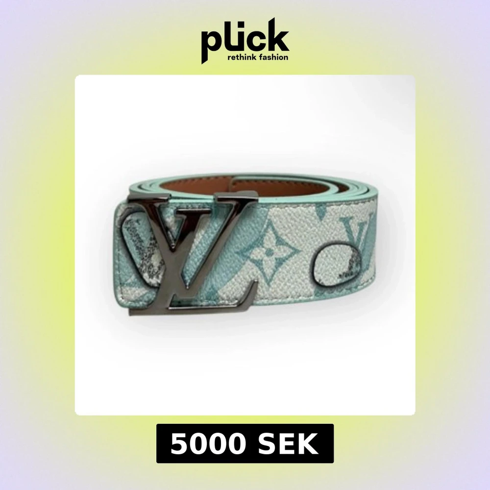 Snyggt bälte från Louis Vuitton i ljusblått med klassiskt monogrammönster och stor LV-spänne i silver. Bältet har en stilren och modern look, perfekt för att lyfta din outfit. Materialet är exklusivt skinn med präglad yta och detaljer i silver.