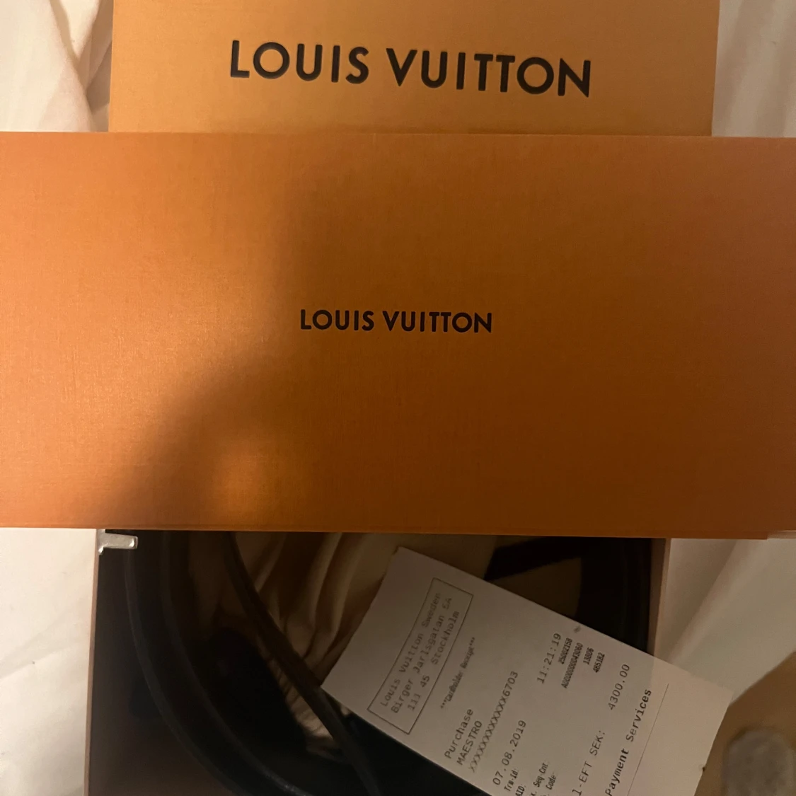 Äkta Louis Vuitton bälte, kommer med originalkvitto, originallåda osv, spännet sitter lite löst men fungerar ändå. Hör av er för att få fler bilder eller vid andra funderingar.