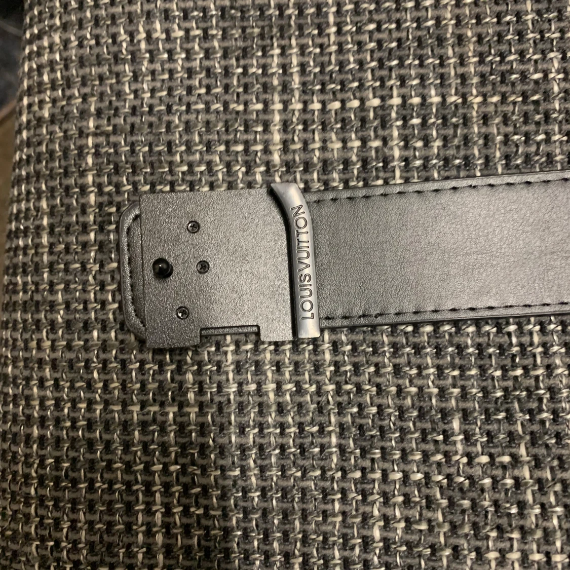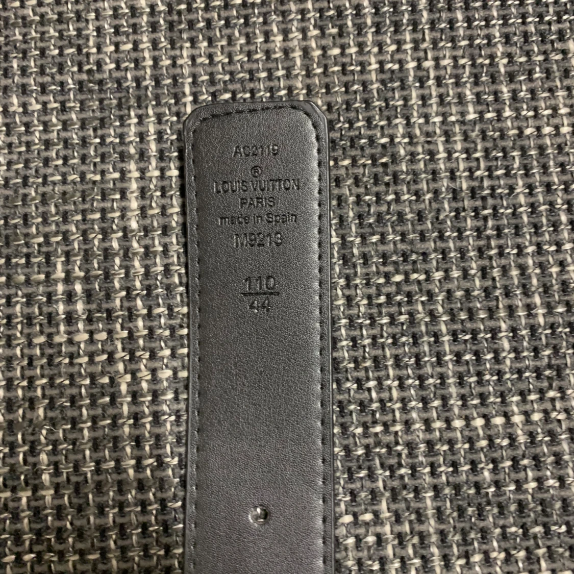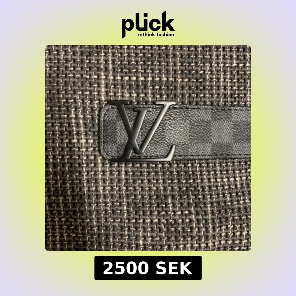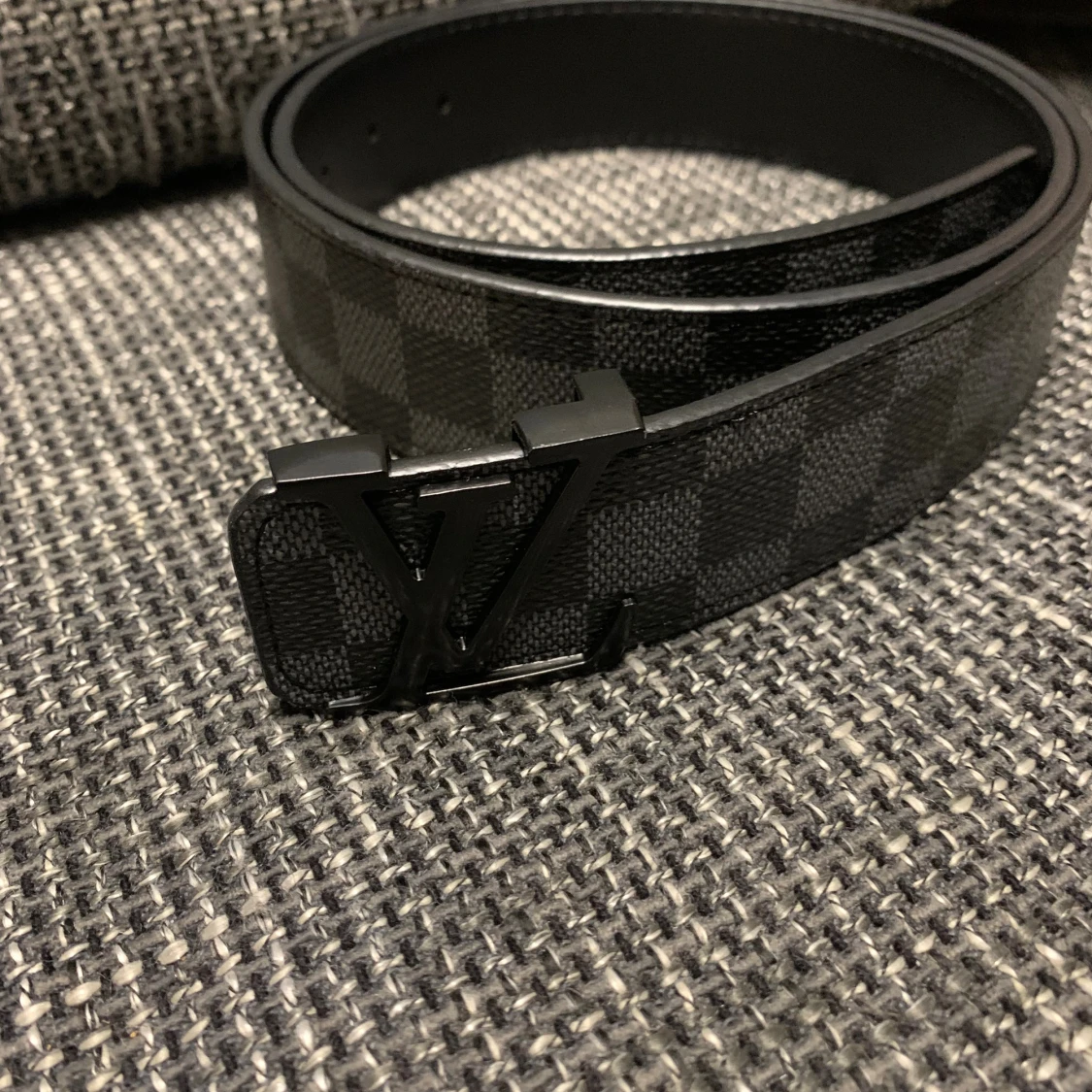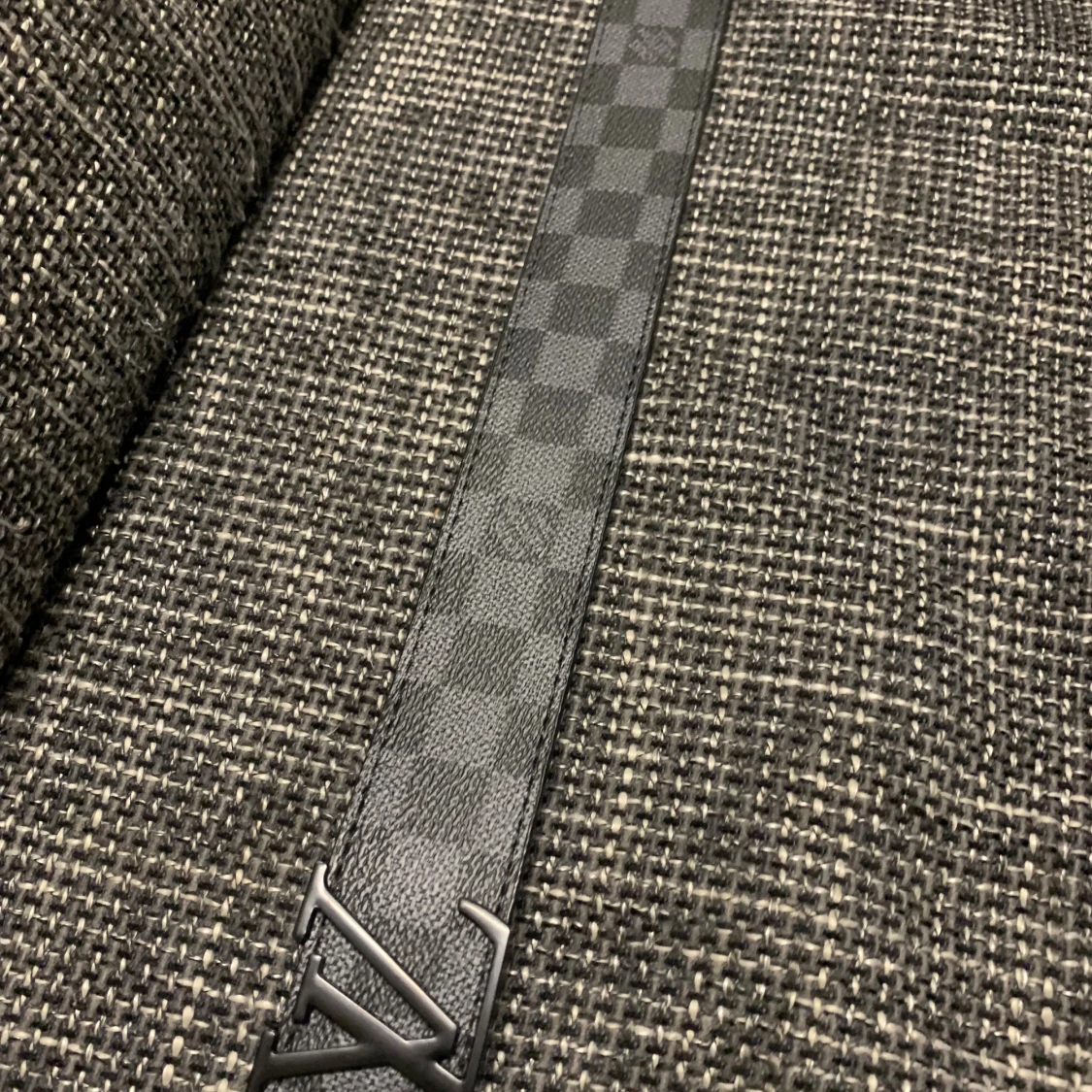 Snyggt Louis Vuitton bälte i Damier Graphite-mönster med klassiskt LV-spänne i mörk metall. Bältet är gjort i svart skinn och har diskret rutigt mönster längs hela bandet. Perfekt accessoar för att lyfta din outfit med en lyxig touch.