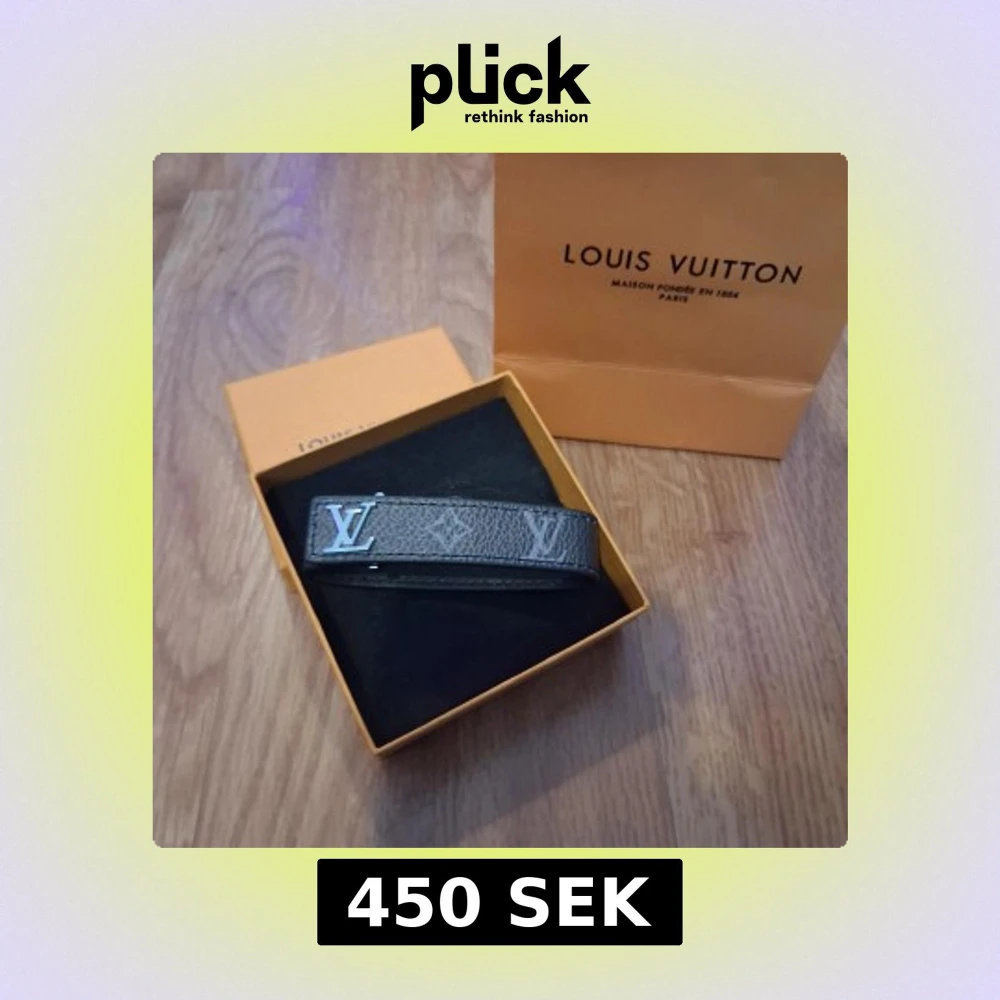 Snyggt armband från Louis Vuitton i grått skinn med klassiskt LV-monogram och silverfärgat LV-spänne. Armbandet har en stilren och exklusiv look, perfekt för dig som gillar designeraccessoarer. Levereras i originalask.