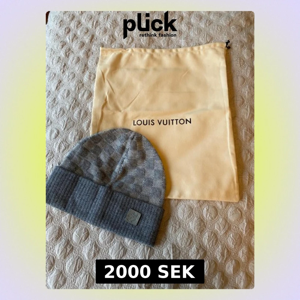 Snygg grå mössa från Louis Vuitton med klassiskt rutigt mönster och ribbad uppvikt kant. Mössan har en metallplakett med Louis Vuitton-logga framtill och är tillverkad i mjuk ull. Perfekt accessoar för att höja din vinterstil.
