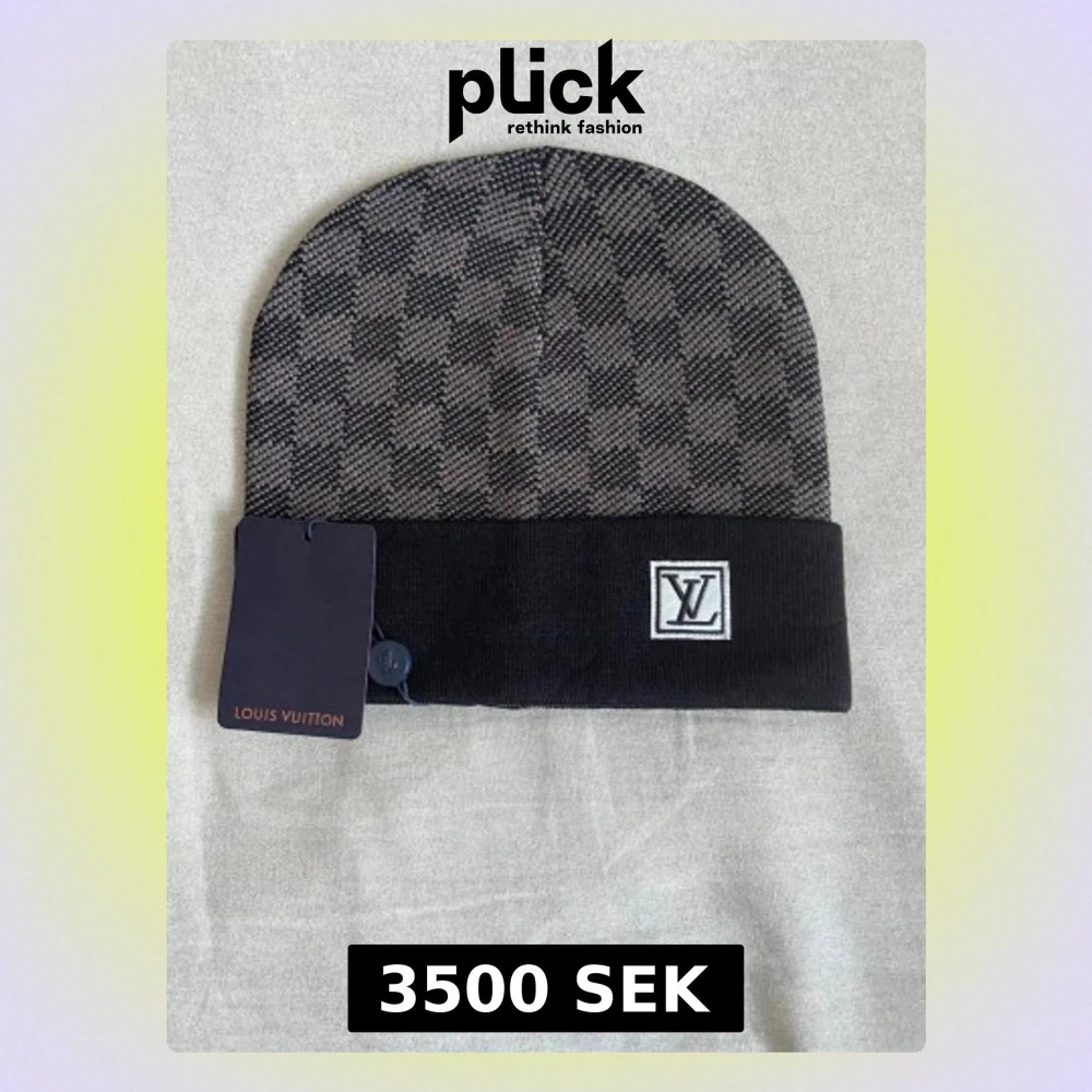 Snygg mössa från Louis Vuitton med klassiskt rutigt mönster i svart och grått. Mössan har en bred svart kant med LV-logga i vitt framtill. Materialet är mjukt och stickat, perfekt för att hålla värmen. En stilren accessoar med exklusiv känsla.
