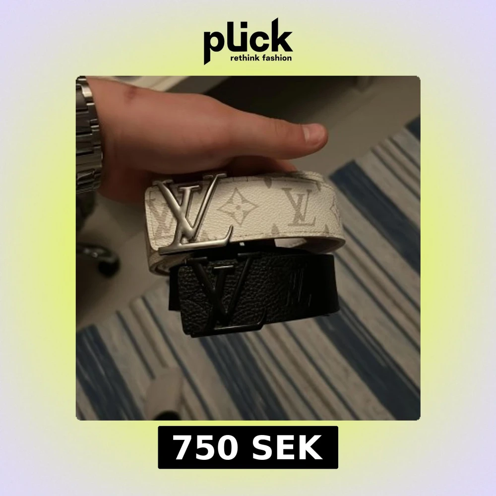 DET SVARTA ÄR SÅLT!! snyggt Louis Vuitton-bälten, ett i vitt skinn med silvrigt LV-spänne och ett i vitt skinn med klassiskt monogrammönster och silverfärgat LV-spänne. Perfekta accessoarer för att lyfta din outfit med lyxig känsla.