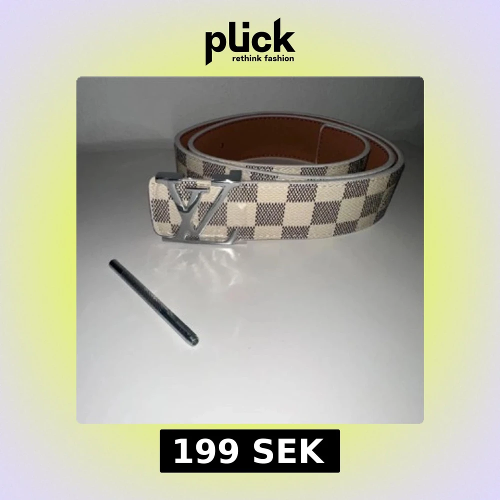 Snyggt bälte från Louis Vuitton med klassiskt rutigt mönster i beige och brunt. Bältet har en stor silvrig LV-logga som spänne och är gjort i skinn. Perfekt accessoar för att lyfta din outfit.