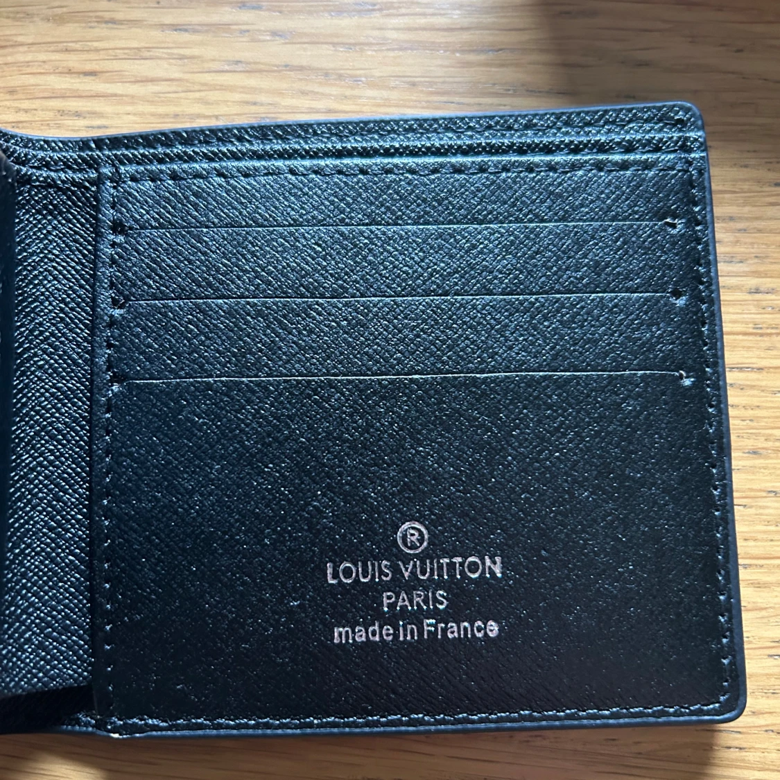 Snygg svart plånbok från Louis Vuitton med klassiskt rutigt Damier-mönster. Plånboken är tillverkad i exklusivt skinn och har flera fack för kort och sedlar. Perfekt storlek för att ha med sig överallt och levereras med original ask.