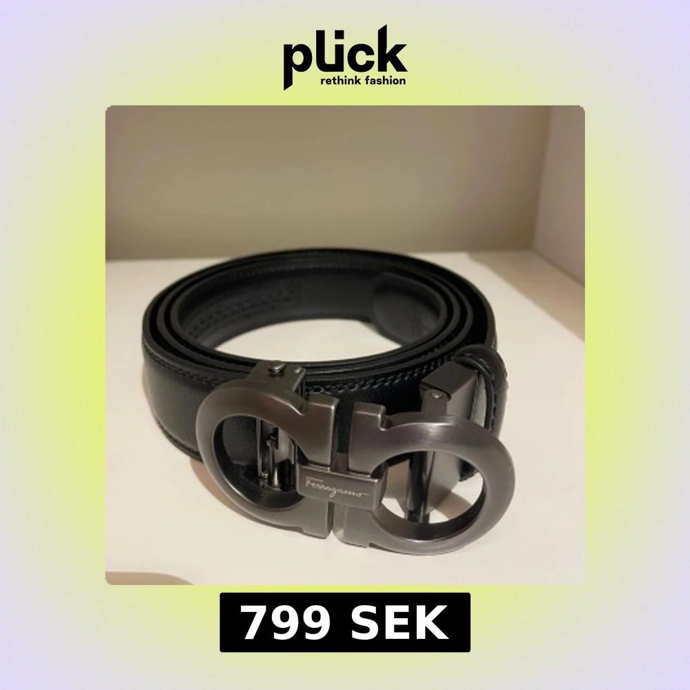Snyggt svart bälte i skinn från Ferragamo med ett metallspänne i grå. Man kan justera det med en riktigt finurlig mekanism 👍 helt nytt aldrig använt. Säljer för detta billiga pris då jag inte har något og kvar.