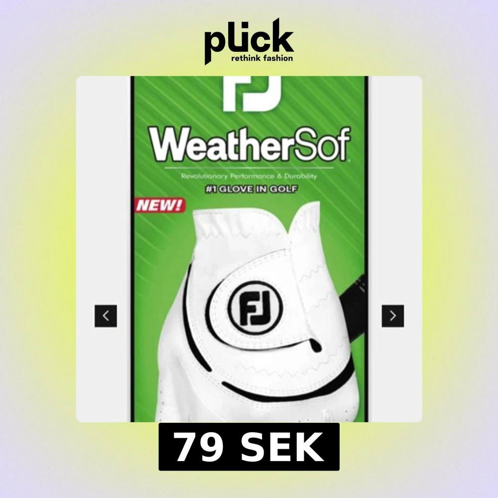 Snygga vita golfhandskar från FootJoy WeatherSof med svart detalj och tydlig FJ-logga på ovansidan. Handskarna har perforeringar för extra ventilation och en klassisk design som passar perfekt för golfbanan. Höger handske