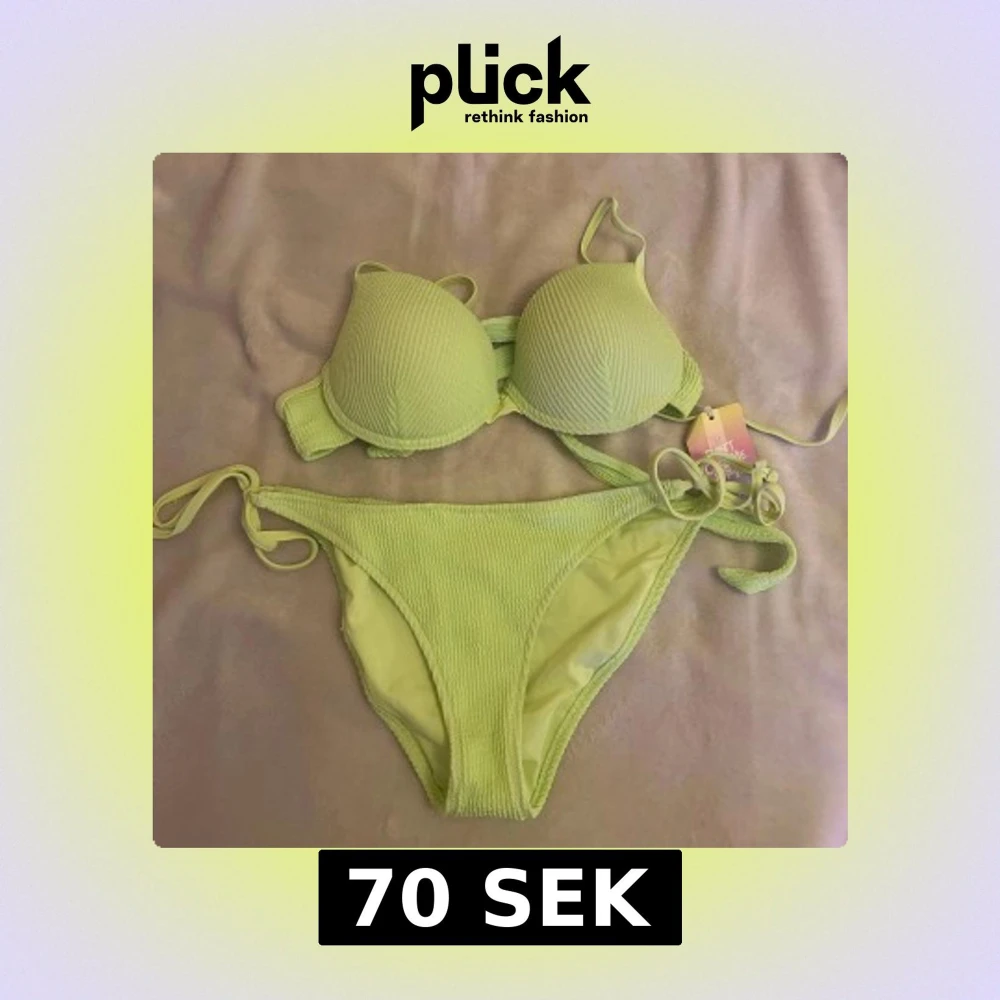 Helt ny bikini i grön färg med prislapp. BH i storlek L med push-up och trosor i storlek M.🩷