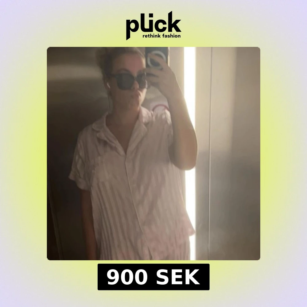 Säljer ett par mjuka och sköna pyjamasshorts i ljusrosa med vita ränder. Shortsen har en loose passform och snörning i midjan för extra komfort. Perfekta för sommarkvällar eller när du bara vill chilla hemma.