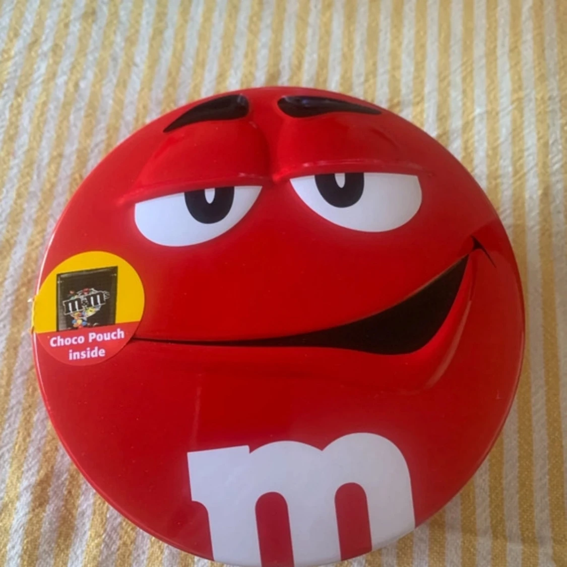 Cool rund låda i form av den röda M&M's-karaktären. Lådan tillverkad i metall med tryckt motiv och har ett lock som går att ta av. Perfekt som accessoar eller förvaring av småsaker.