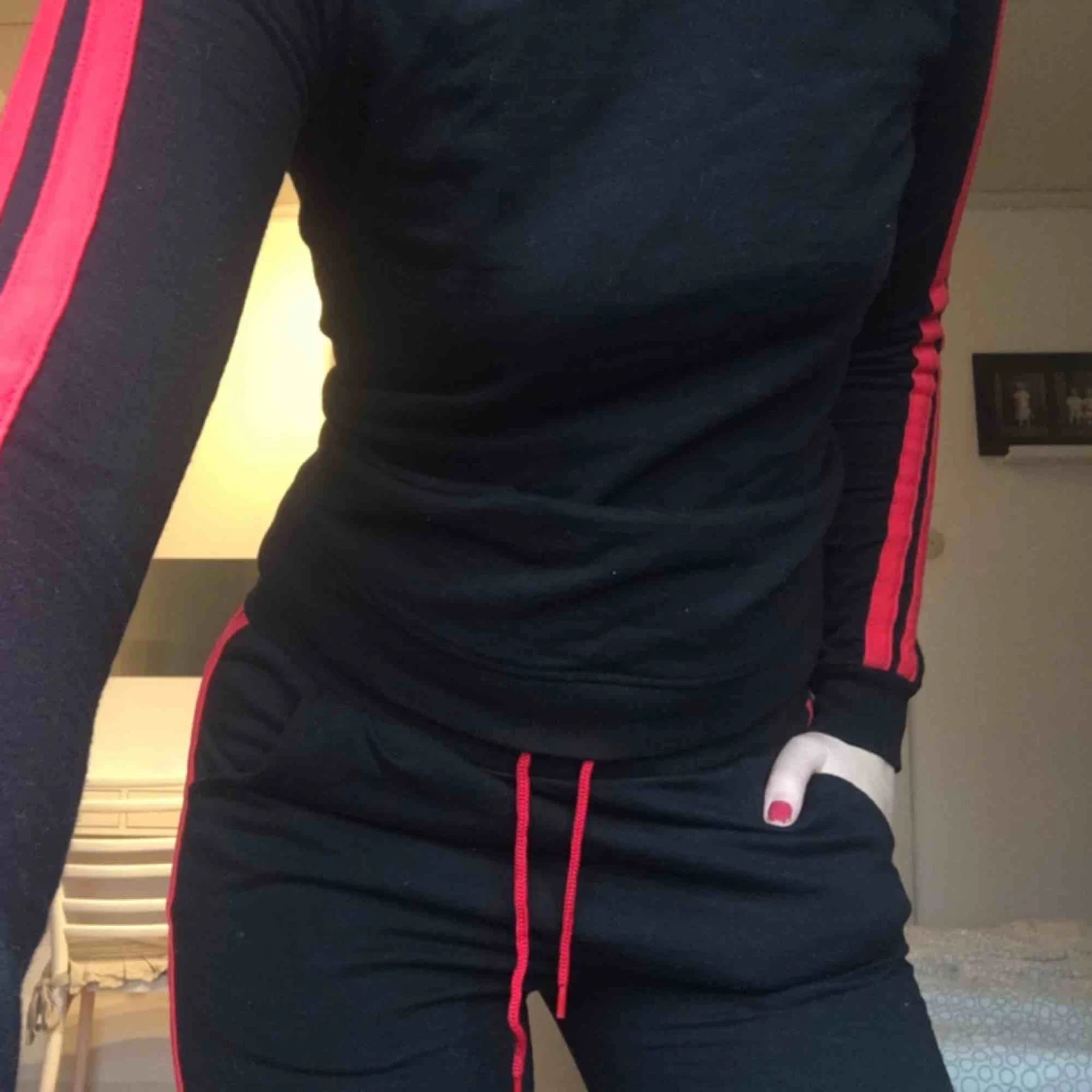 mjukisset, strlk xs på båda delarna, 2 röda ränder längs med armarna och byxorna, (kan köpas separat eller som set) köparen står för eventuell frakt😊