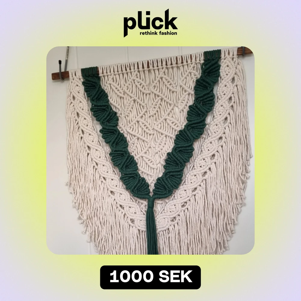 Handgjord makrame av mig. Den är gjord på 100% återvunnen bomull från Bobbiny. (Ca 300 meter tråd på denna väggbonaden) Pinnens bredd är 65cm och längden på väggbonaden är 79cm. Undrar ni något så tveka inte att höra av er.