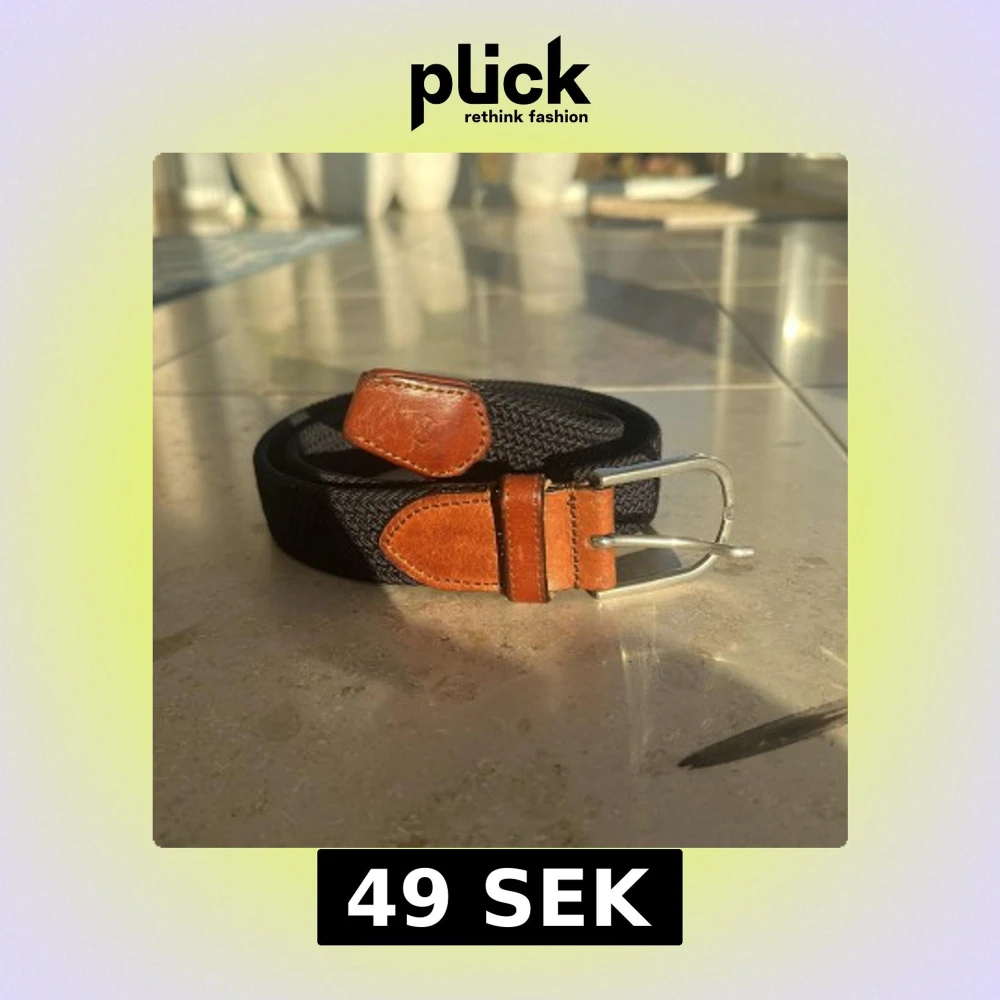 Snyggt marinblått flätat bälte med bruna skinn-detaljer vid spännet och ändarna. Bältet har ett klassiskt silverfärgat metallspänne och är perfekt för att ge din outfit en stilren touch. Flätad design gör det flexibelt och bekvämt att bära. Priset är diskuterbart!