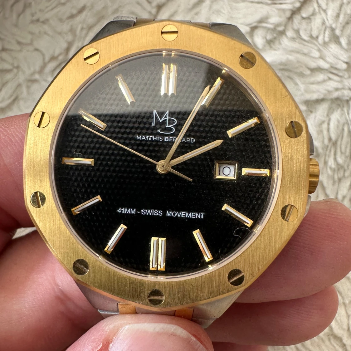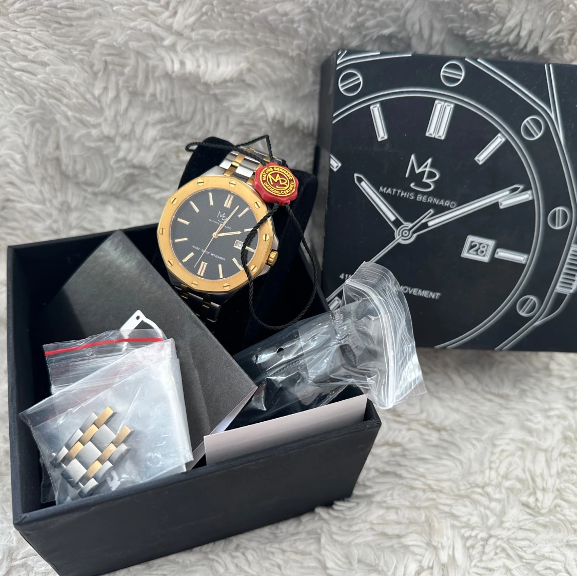 Matthis Bernard ZG Saint Tropez Limited Edition klocka & begränsat antal med numrering 024/035 & 316L rostfritt stål 41 mm hölje med finaste silver/guldfärgnyans & en tidlös obsidiansvart urtavla & robust reptåligt safirglas & Swiss Ronda 505 urverk.