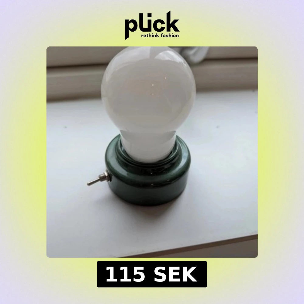 Det här är ingen bok, utan en elektrisk pryl som är en glödlampa på en grön bas med en strömbrytare. Den verkar vara en dekorativ lampa eller nattlampa.