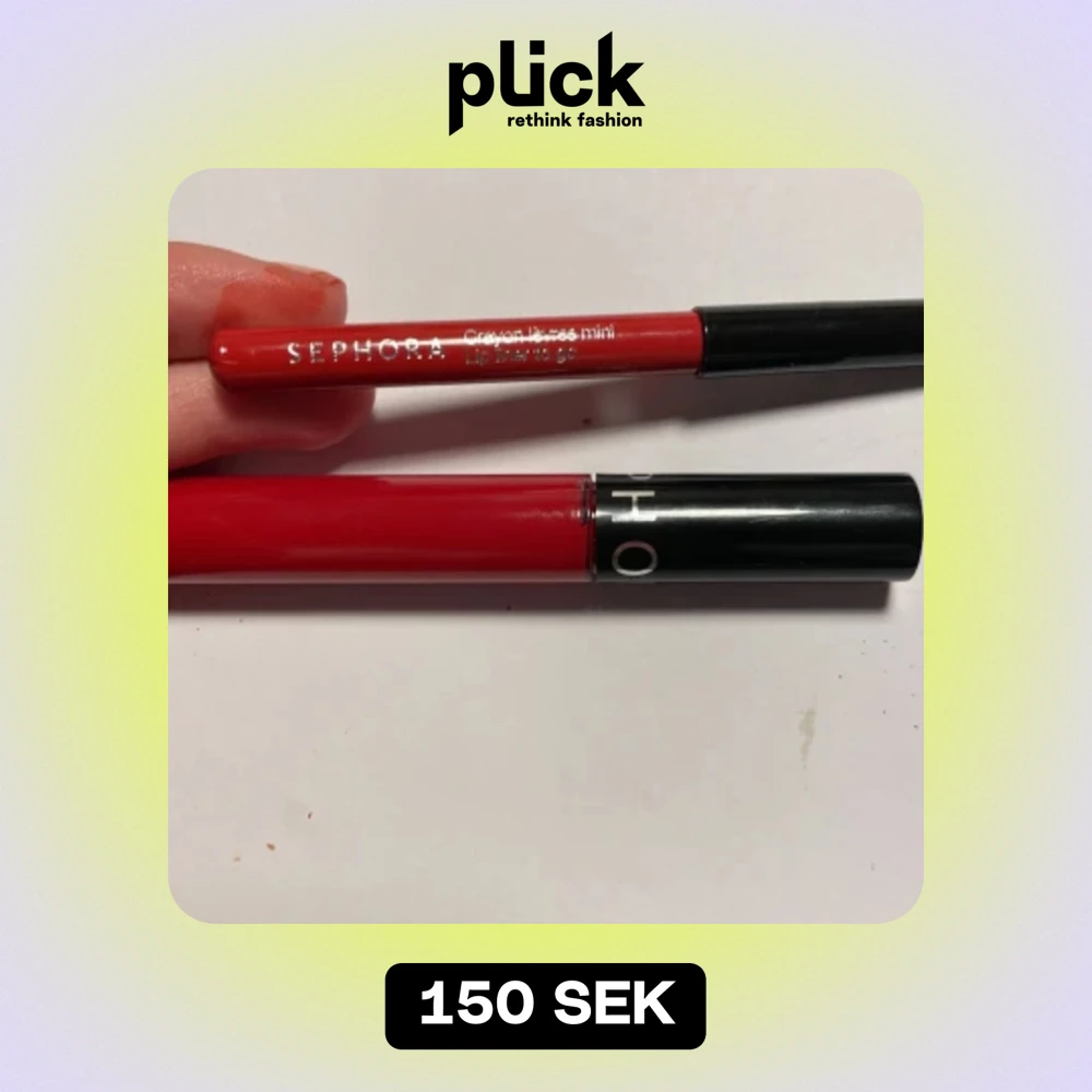 Läppglans och läppenna från sephoras julkalender, endast testat knallröd! Diskutera pris om du vill 🫶🏻 Ganska nya, fint skick. Skulle väsa pennan innan jag la ut ba så vässade med vanlig pennvässare så ser kanske lite annorlunda ut där fram.