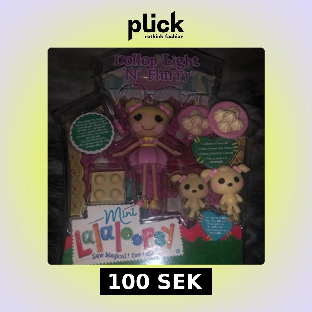 Mini Lalaloopsy: Dollop Light 'N' Fluffy! Du fĂ„r med ett extra djur + ett fat med cupcakes đ§. Skapad Ă„r 2013 och oöppnad, En söt samlarfigur med gulliga accessoarer. Perfekt för dig som Ă€lskar fĂ€rgglada och kreativa leksaker. Passar ungefĂ€r alla Ă„ldrar som vill ha nĂ„got unikt och lekfullt i hyllan.đ
