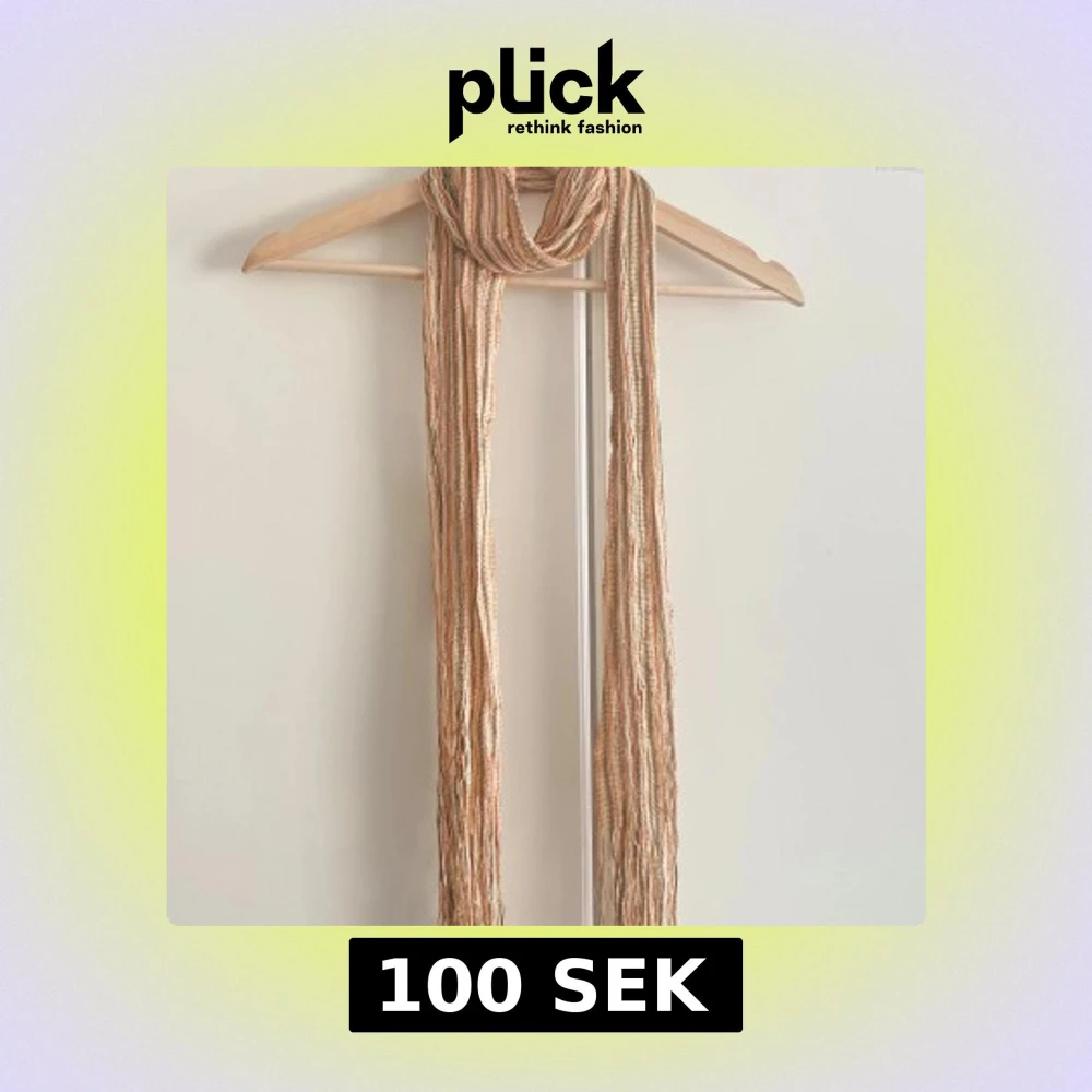 Lång och smal halsduk med tunna ränder i beige, orange och bruna toner. Halsduken har en luftig och lätt struktur, perfekt att slänga över axlarna för en avslappnad look. Passar dig som gillar boho-vibbar och mjuka färger.