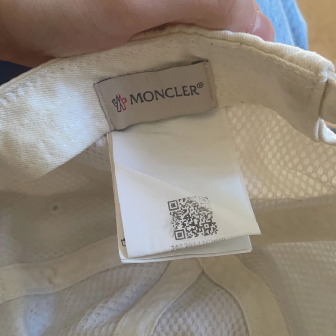 Vit Moncler keps. Liten spricka i tyget på framskärmen (syns på första bilden). Nypris ca 1300-1500kr