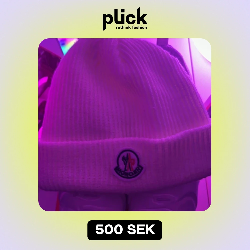 Vit Moncler mössa Aldrig använd säljs för att jag ser ut som en gnom i mössa😂