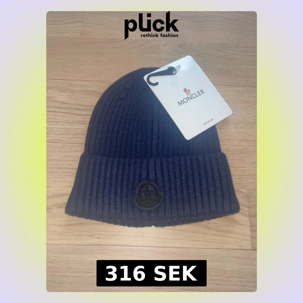 Snygg mörkblå ribbstickad mössa från Moncler med uppvikt kant och diskret Moncler-logga framtill. Mössan är tillverkad i mjuk ull och har en klassisk, stilren form som passar perfekt för kyliga dagar.