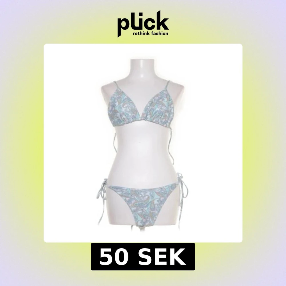 Snygg bikini i ljusblått med paisleymönster i pastellfärger. Köpta på sellpy, tvättade av mig och sedan aldrig använda.
