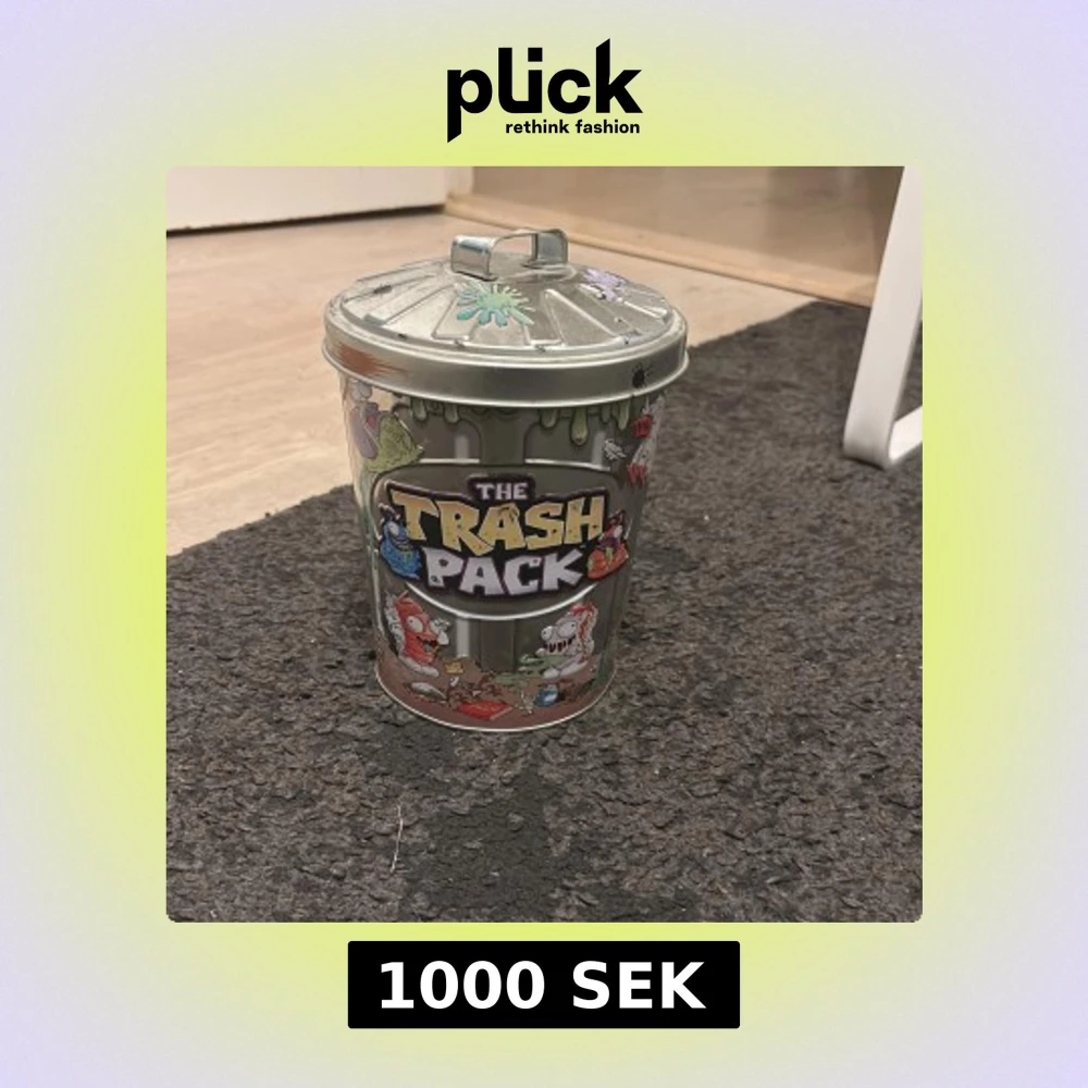Samlingsburk från The Trash Pack, tillverkad av metall med färgglada detaljer. Den är i nästan nytt skick. Perfekt för förvaring av Trash Pack-figurer eller småsaker. Lock med handtag ingår. Denna vara är i special limited edition och går inte att köpas längre. Den köptes för 3599kr ny. Säljer för 700kr. Pris kan diskuteras.