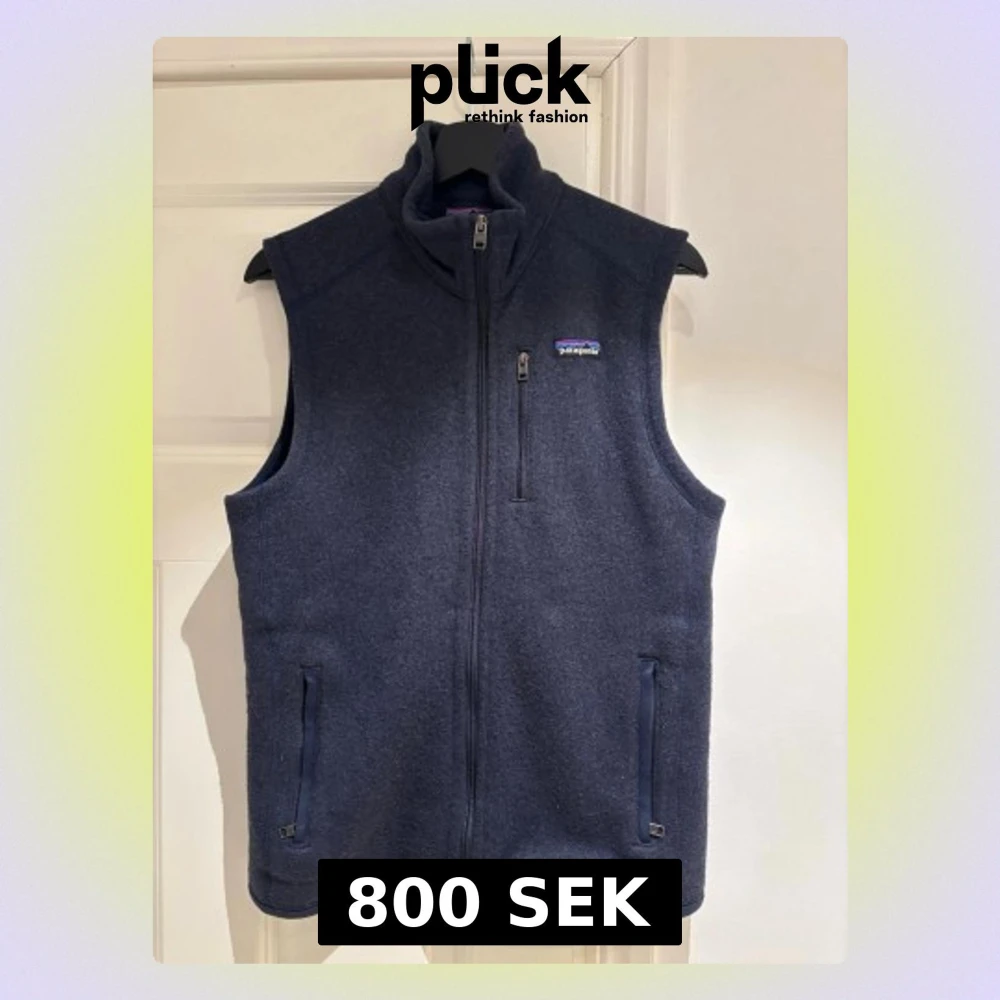 Snygg mörkblå fleeceväst från Patagonia med hög krage och hel dragkedja framtill. Västen har tre praktiska fickor med dragkedja och ett diskret logomärke på bröstet. Perfekt för lager-på-lager och chill dagar.