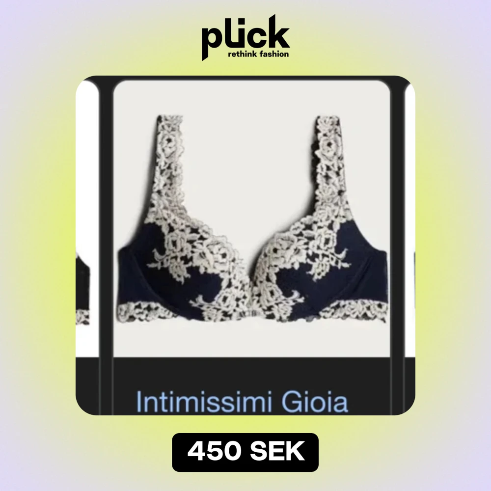 Intressekoll på en elegant mörkblå behå från Intimissimi med vacker spetsdetalj i beige. Behån har en klassisk design med spets som pryder både kupor och axelband. Perfekt för en lyxig känsla under kläderna. Nypris 499kr